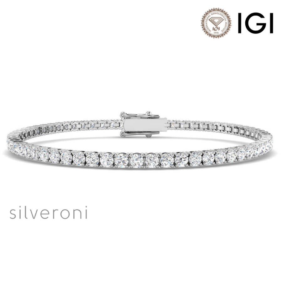 lab grown diamond bracelet, 4 carat tennis bracelet, ethical white gold bracelet, luxury jewelry thailand, vvs lab diamond, d color diamonds, handcrafted lab jewelry, claw setting tennis bracelet, ethical fine jewelry, 18k white gold bracelet