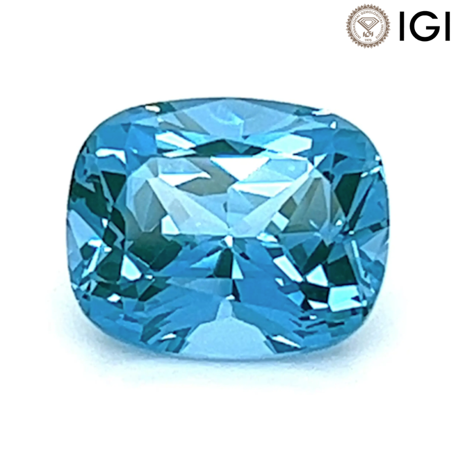 The 5.53-carat Cushion-Cut Lab-Created Paraiba teal spinel is a stunning gemstone that combines beauty and sustainability. It is made with care, shines like a natural gemstone, and is a good environmental choice.