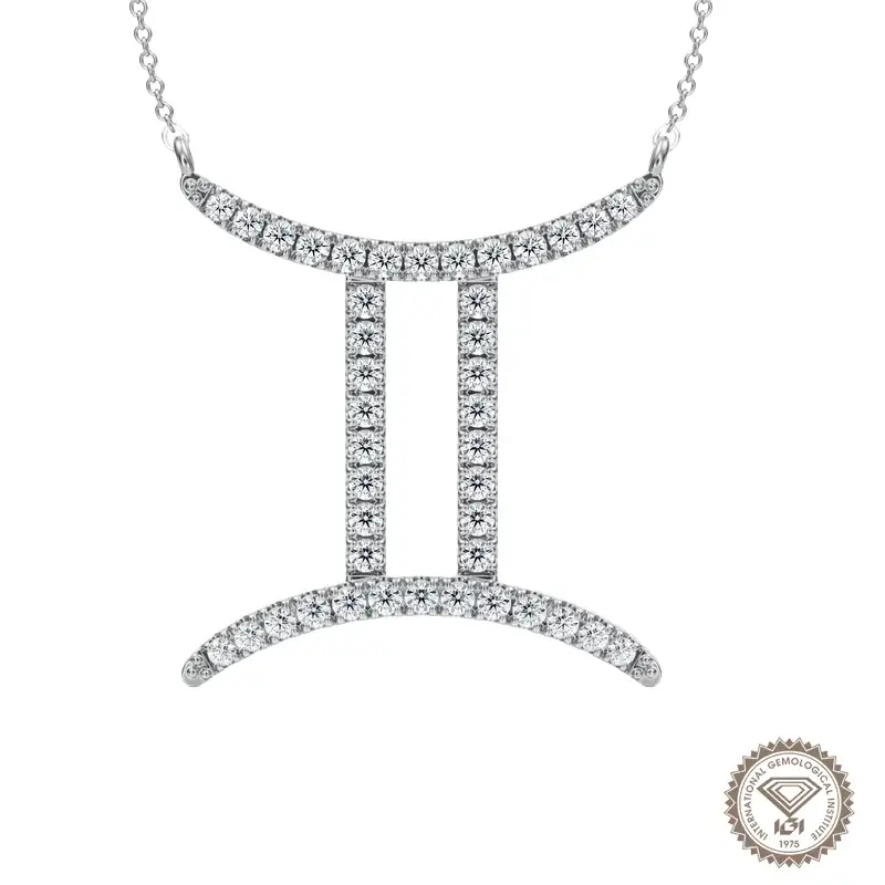 The Silveroni Gemini Zodiac Necklace is a breathtaking celebration of duality, curiosity, and spirited connection. Crafted for those born between May 21 and June 20, this pendant embodies the vibrant essence of Gemini: adaptable, inquisitive, and endlessly radiant. At its center lies a luminous 1-carat total weight of IGI-certified lab-grown diamonds, each stone achieving VS clarity for a brilliance that captivates without overwhelming.