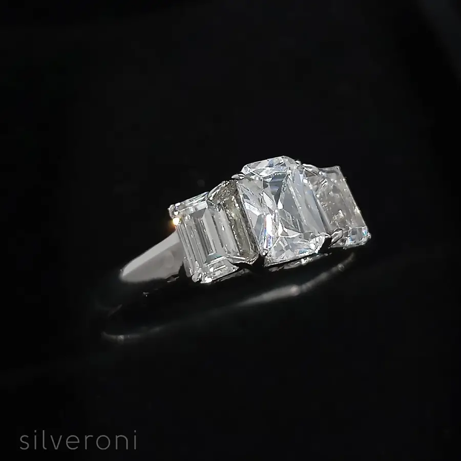 lab grown diamond trio ring, 1.00 carat emerald-cut diamond ring, 18k gold engagement ring, VS clarity diamonds, ethical fine jewelry, classic diamond ring, sustainable luxury, Silveroni diamond ring