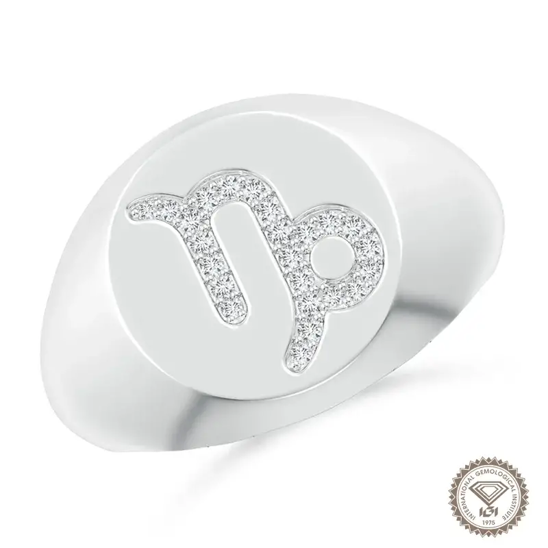 At its heart lies the Capricorn symbol—strong, structured, and beautifully expressive—elevated with a constellation of brilliant lab-grown diamonds totaling 1 carat. Every facet reflects Silveroni’s commitment to detail, ensuring each diamond glimmers with unparalleled brilliance. The solid 18K white gold band offers not only lasting durability but also a luminous sheen that amplifies the diamonds’ radiance.