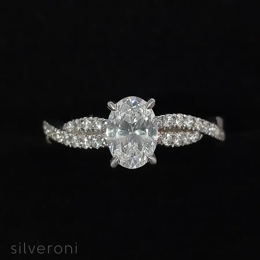 At its heart lies a delicately cut oval lab-grown diamond, sized at 6.5 x 4.5 mm and weighing 0.5 carats — offering a graceful focal point that flatters the finger with an elongated sparkle.