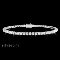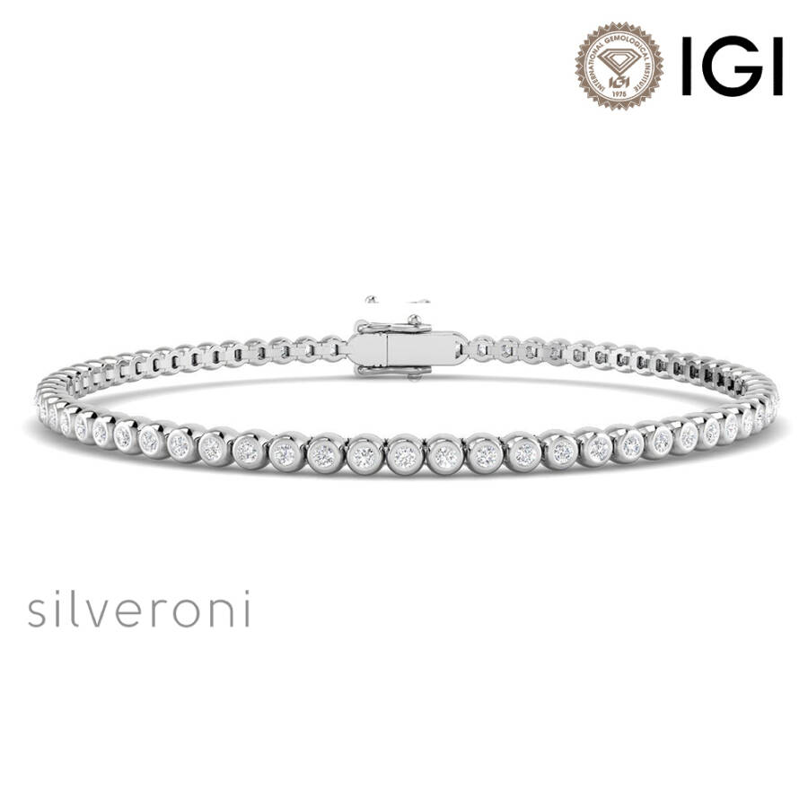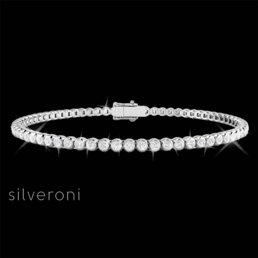 1 carat lab diamond bracelet, bezel set bracelet, lab-grown tennis bracelet, round cut lab diamond, ethical diamond jewelry, 18k white gold minimalist bracelet, Silveroni signature, D color diamond bracelet, Thai handcrafted jewelry, eco luxury gifts