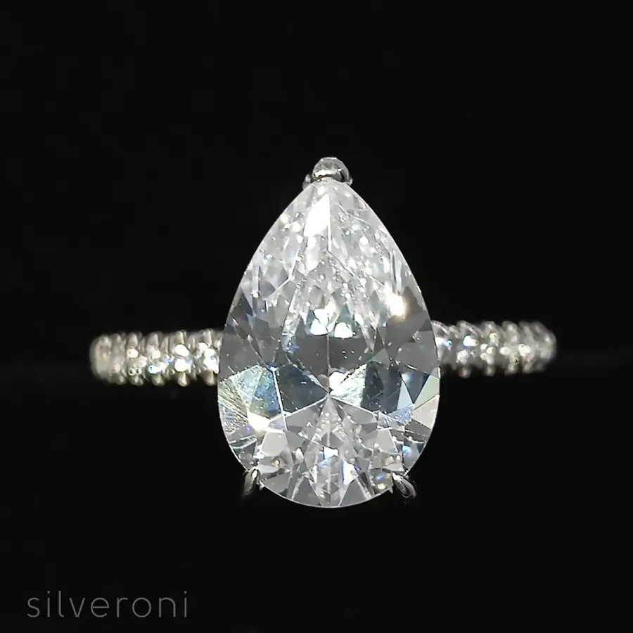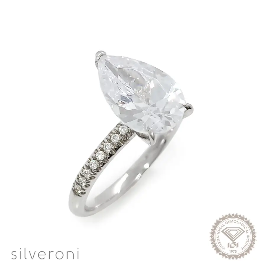 Lasting Elegance Pear Lab Grown Diamond Ring from Silveroni represents a romantic and ethical luxury piece that celebrates your love story. The ring serves as a symbol of enduring commitment through its brilliant design.