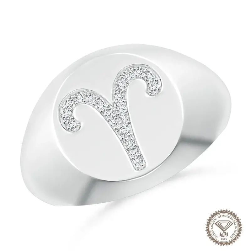 The Silveroni Aries Zodiac Signet Ring is a radiant symbol of leadership, energy, and fearless self-expression—made for those born between March 21 and April 19. Crafted with IGI-certified lab-grown diamonds of D color and VS clarity, all meticulously set in polished 18K ethical white gold, this ring blends bold ambition with refined artistry.