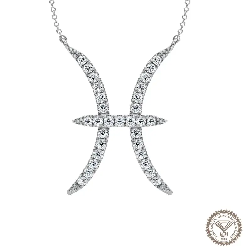 The Silveroni Pisces Zodiac Necklace is a poetic echo of intuition, empathy, and dreamy elegance—specially designed for those born between February 19 and March 20. Pisces, a water sign known for its connection to the unseen and its deeply empathetic nature, finds its essence captured in this exquisite pendant. Featuring 1 carat of IGI-certified lab-grown diamonds with VS clarity, set in luminous 18K white gold, this necklace is a gentle symphony of sparkle and sentiment.