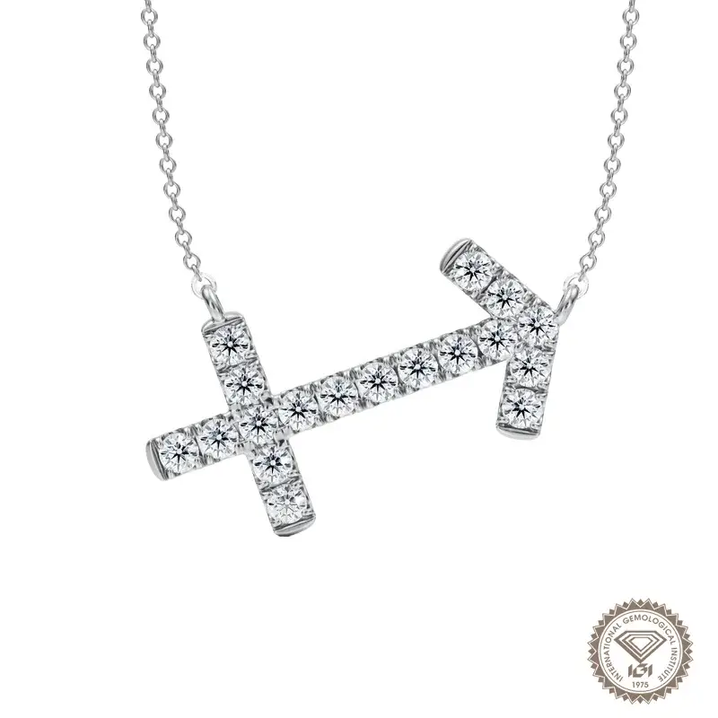 The Silveroni Sagittarius Zodiac Necklace is a radiant symbol of adventure, optimism, and boundless spirit—perfect for those born between November 22 and December 21. Sagittarius is known for its free-spirited energy, philosophical heart, and fiery enthusiasm. This pendant captures all that with 1 carat of IGI-certified lab-grown diamonds in VS clarity, elegantly set within lustrous 18K white gold.