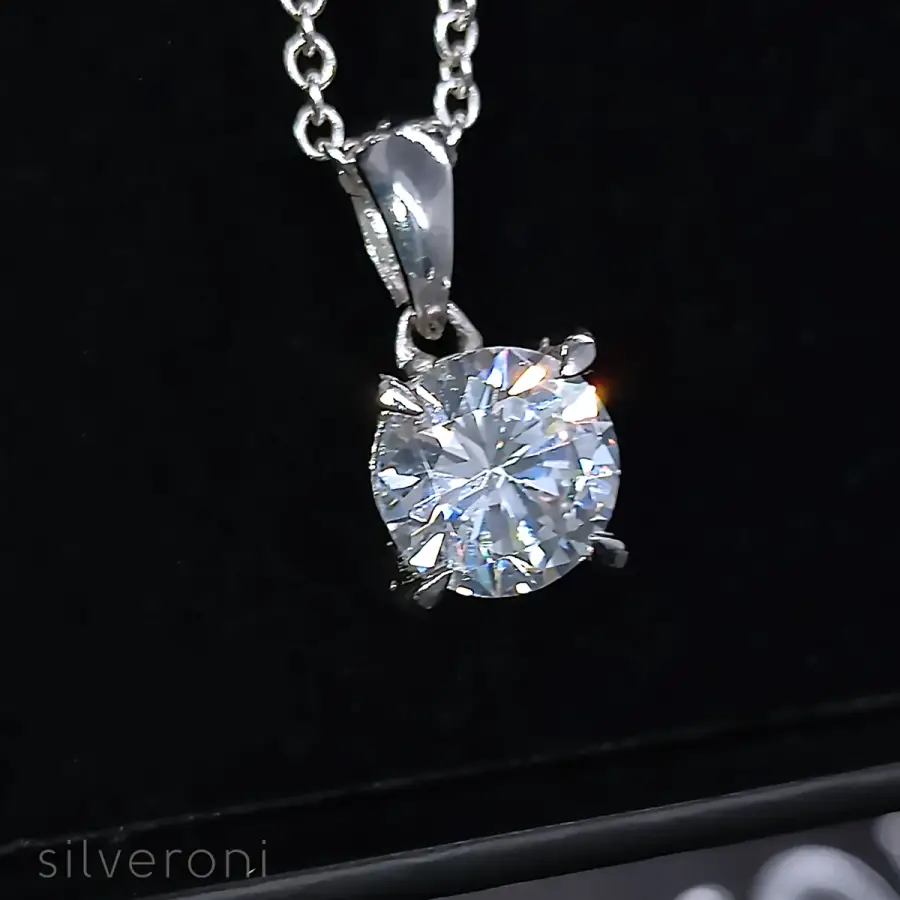 Embrace the ethereal beauty of the Starlit Harmony Round Lab Grown Diamond Necklace by Silveroni. This exquisite piece combines sustainable luxury with a timeless design that represents starlit skies.