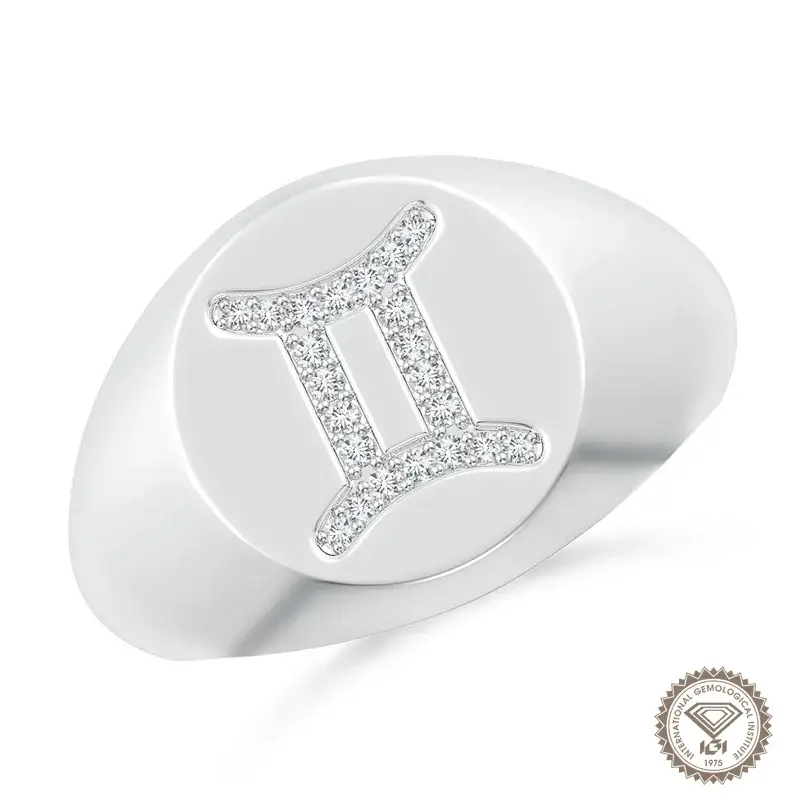 The Silveroni Gemini Zodiac Signet Ring is a celebration of dual spirit, intellectual charm, and celestial sophistication—crafted for those born between May 21 and June 20. This ring houses shimmering lab-grown diamonds of D color and VS clarity, exquisitely set in durable, polished 18K ethical white gold, forming a timeless badge of expression.