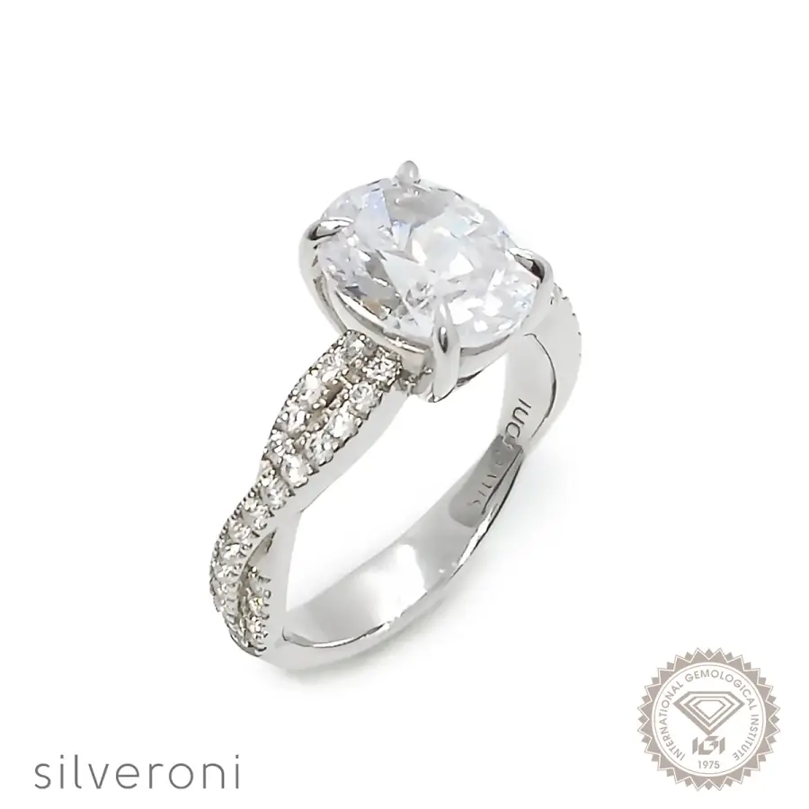 The Stellar Embrace Lab Grown Diamond Ring captures the grandeur of the cosmos within a single design. Hand-crafted to reflect Silveroni’s signature harmony between ethics and elegance, this masterpiece features a 9.5 × 7.5 mm oval-cut lab-grown diamond surrounded by 44 brilliant 1.3 mm accent stones, forming a radiant halo of 2 total carats that shines from every perspective.