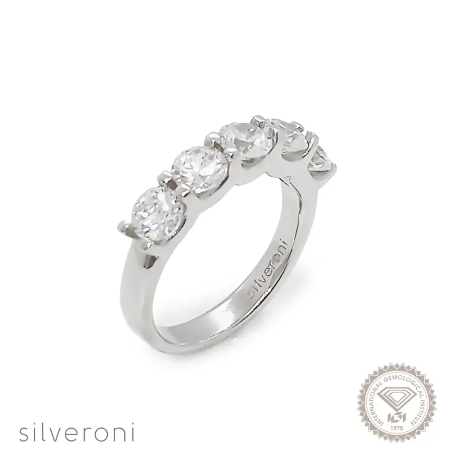 Each of the five round cut diamonds is carefully selected to match in brilliance and symmetry. At 5.5 mm each, they deliver fire, depth, and exceptional sparkle across the band—creating a vintage-inspired yet undeniably radiant design. Every stone is lab-grown, ensuring conflict-free luxury without compromise.